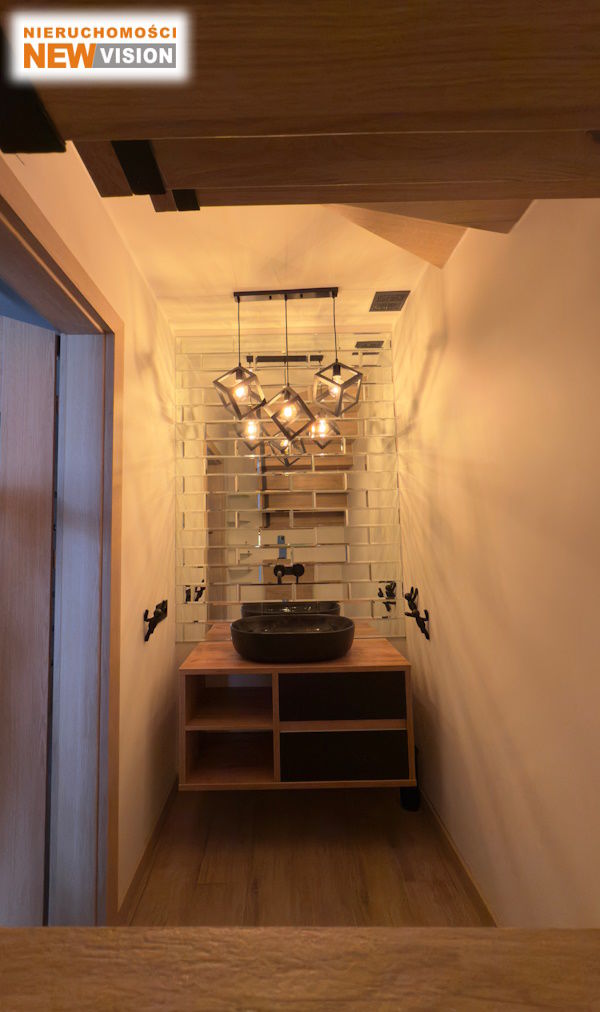 Dom jest w pełni wyposażony i wykończony z dbałością o najdrobniejsze detale. W salonie króluje kominek, a głównym źródłem ciepła i ciepłej wody jest pompa ciepła. Istnieje także możliwość zainstalowania pieca gazowego - przyłącze gazowe jest doprowadzone do nieruchomości ( miejsce na piec w pralni na 1.piętrze). W cenie pozostaje część umeblowania, w tym zabudowa kuchenna wraz ze sprzętem AGD: płyta indukcyjna z pochłaniaczem, piekarnik, zabudowany ekspres do kawy, mikrofalówka, zmywarka i lodówka. Dom zabezpieczony alarmem, drzwiami antywłamaniowymi oraz roletami antywłamaniowymi w oknach, zapewniając bezpieczeństwo i komfort.