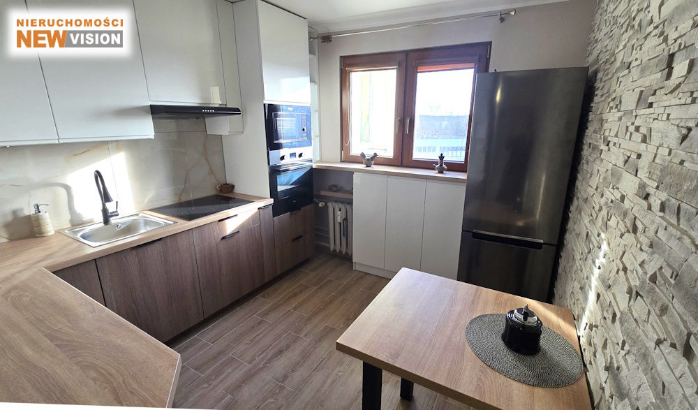 Wysokiej jakości wykończenie podkreślają panele i kafle na podłogach, gładkie ściany oraz starannie wykończony przedpokój i kuchnia. Okna PCV w eleganckim odcieniu złotego dębu zapewniają doskonałą izolację akustyczną i termiczną. Instalacje wodno-kanalizacyjne zostały wymienione w kuchni, łazience i WC, co świadczy o dbałości o szczegóły i wysokim standardzie remontu. Kuchnia została wyposażona w meble na wymiar oraz nowoczesny sprzęt AGD: lodówkę, piekarnik, płytę indukcyjną, mikrofalę i zmywarkę. Łazienka i WC przeszły gruntowną modernizację - nowe kafle, armatura i kabina prysznicowa podkreślają ich świeży wygląd. Aktualnie jeden z pokoi czeka na finalne wykończenie, a w cenie mogą zostać panele podłogowe, co umożliwia szybkie wprowadzenie się.