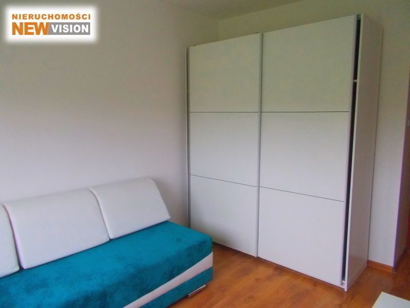W dużym pokoju znajdują się: sofa, stolik, telewizor, szafka, szafa. Drugi pokój - sypialnia z szafą w zabudowie. W przedpokoju szafa w zabudowie. W nowych oknach - nowe rolety.