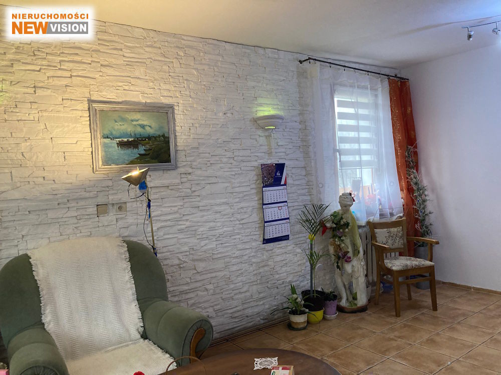 Wnętrze urządzone jest w jasnym, przytulnym stylu — na podłogach kafle, a ściany ozdobione gładziami i modną cegiełką. Okna plastikowe wychodzą na zachód, co gwarantuje dużą ilość naturalnego światła i przyjemną, ciepłą atmosferę przez cały dzień. To również oszczędność energii i komfort termiczny.